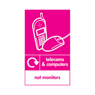 The Telecoms & Computers Recycling Icon - Not Monitors V1 sign falls under the Electrical Recycling category. This sign is commonly used in various settings, including workplaces, schools, and public spaces, to enhance safety and compliance. This sign complies with UK health and safety stand