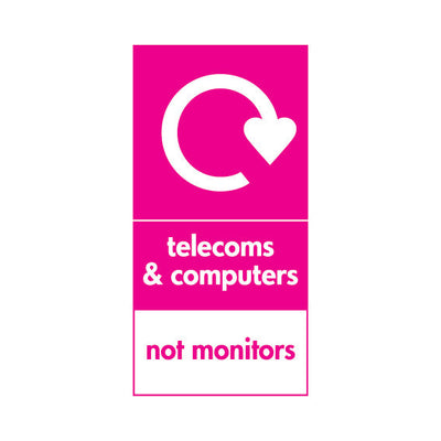 The Telecoms & Computers Recycling - Not Monitors sign falls under the Electrical Recycling category. This sign is commonly used in various settings, including workplaces, schools, and public spaces, to enhance safety and compliance. This sign complies with UK health and safety standards, in