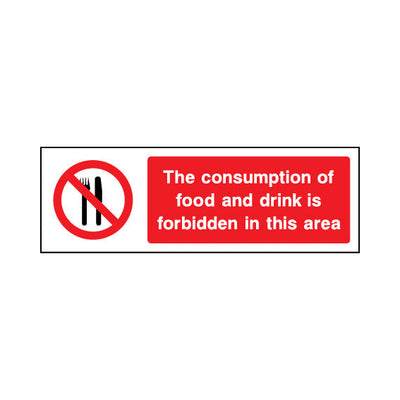 The The Consumption Of Food And Drink Is Forbidden In This Area sign falls under the General Prohibition category. This sign is commonly used in various settings, including workplaces, schools, and public spaces, to enhance safety and compliance. This sign complies with UK health and safety stan