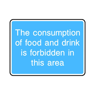 The The Consumption Of Food And Drink Is Forbidden In This Area sign falls under the Information Signs category. This sign is commonly used in various settings, including workplaces, schools, and public spaces, to enhance safety and compliance. This sign complies with UK health and safety standa