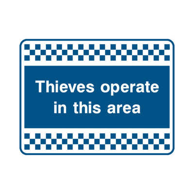 The Thieves Operate In This Area sign falls under the Security category. This sign is commonly used in various settings, including workplaces, schools, and public spaces, to enhance safety and compliance. This sign complies with UK health and safety standards, including BS ISO 7010, ensuring tha