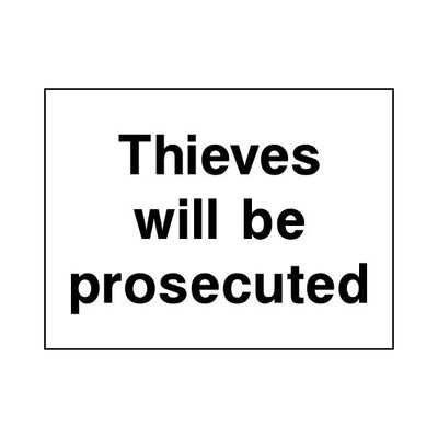 The Thieves Will Be Prosecuted sign falls under the Security category. This sign is commonly used in various settings, including workplaces, schools, and public spaces, to enhance safety and compliance. This sign complies with UK health and safety standards, including BS ISO 7010, ensuring that
