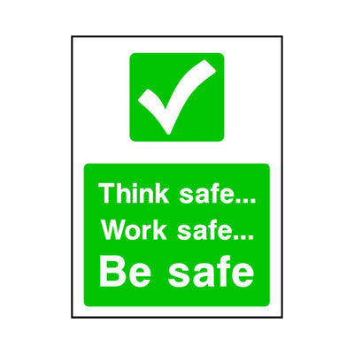 The Think Safe... Work Safe... Be Safe sign falls under the Food Processing & Hygeine category. This sign is commonly used in various settings, including workplaces, schools, and public spaces, to enhance safety and compliance. This sign complies with UK health and safety standards, includin