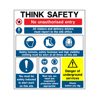 The Think Safety - Main Site Entrance Sign sign falls under the Construction category. This sign is commonly used in various settings, including workplaces, schools, and public spaces, to enhance safety and compliance. This sign complies with UK health and safety standards, including BS ISO 7010