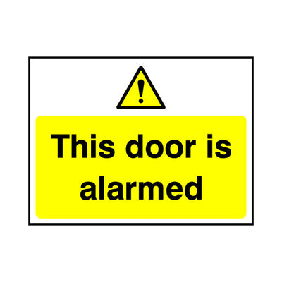 The This Door Is Alarmed sign falls under the Security category. This sign is commonly used in various settings, including workplaces, schools, and public spaces, to enhance safety and compliance. This sign complies with UK health and safety standards, including BS ISO 7010, ensuring that it meets legal requirements for safety signage. By displaying this sign, you contribute to creating a safer environment while adhering to regulations. At One Printer, we make it easy to order the exact product you need. You can select from a range of materials and finishing options to suit your specific requirements. Our available materials include 1mm PVC, 3mm Foamex, 3mm Dibond, self-adhesive vinyl, anti-slip floor graphics, and removable magnetic. Finishing options include 3M double-sided tape or drill holes for easy installation. With One Printer, you can be confident that your signage meets the highest standards of safety, durability, and customisation, all backed by our expert customer support team. H&S Sign Product Code: S059.
