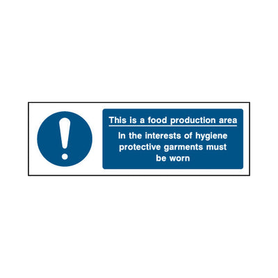 The This Is A Food Production Area sign falls under the Food Processing & Hygeine category. This sign is commonly used in various settings, including workplaces, schools, and public spaces, to enhance safety and compliance. This sign complies with UK health and safety standards, including BS