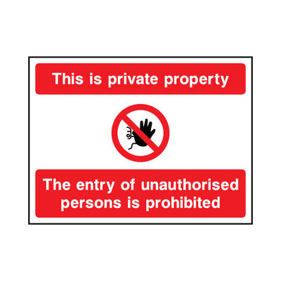The This Is Private Property - Entry Of Unauthorised Persons Is Prohibited sign falls under the Construction category. This sign is commonly used in various settings, including workplaces, schools, and public spaces, to enhance safety and compliance. This sign complies with UK health and safety