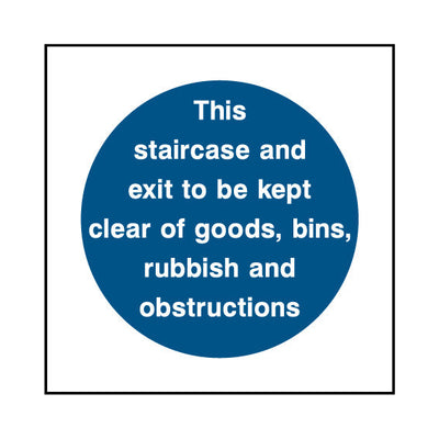 The This Staircase And Exit To Be Kept Clear sign falls under the Fire Prevention category. This sign is commonly used in various settings, including workplaces, schools, and public spaces, to enhance safety and compliance. This sign complies with UK health and safety standards, including BS ISO