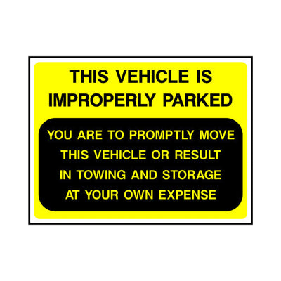 The This Vehicle Is Improperly Parked sign falls under the Parking category. This sign is commonly used in various settings, including workplaces, schools, and public spaces, to enhance safety and compliance. This sign complies with UK health and safety standards, including BS ISO 7010, ensuring that it meets legal requirements for safety signage. By displaying this sign, you contribute to creating a safer environment while adhering to regulations. At One Printer, we make it easy to order the exact product you need. You can select from a range of materials and finishing options to suit your specific requirements. Our available materials include 1mm PVC, 3mm Foamex, 3mm Dibond, self-adhesive vinyl, anti-slip floor graphics, and removable magnetic. Finishing options include 3M double-sided tape or drill holes for easy installation. With One Printer, you can be confident that your signage meets the highest standards of safety, durability, and customisation, all backed by our expert customer support team. H&S Sign Product Code: P027.