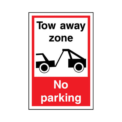 The Tow Away Zone - No Parking sign falls under the Parking category. Ideal for use in car parks, driveways, and loading bays to manage vehicle access and prevent obstructions. This sign complies with UK health and safety standards, including BS ISO 7010, ensuring that it meets legal requirement