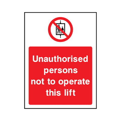 The Unauthorised Persons Not To Operate This Lift sign falls under the General Prohibition category. This sign is commonly used in various settings, including workplaces, schools, and public spaces, to enhance safety and compliance. This sign complies with UK health and safety standards, includi