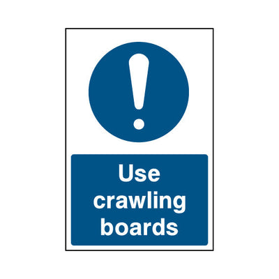 The Use Crawling Boards sign falls under the Construction category. This sign is commonly used in various settings, including workplaces, schools, and public spaces, to enhance safety and compliance. This sign complies with UK health and safety standards, including BS ISO 7010, ensuring that it