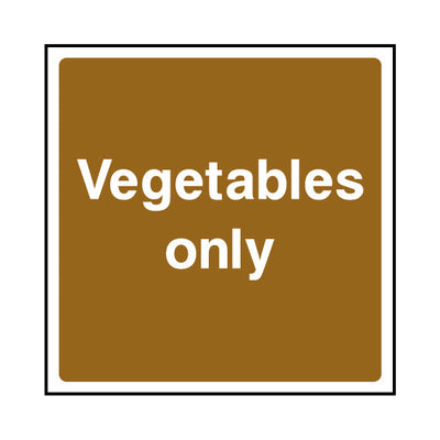 The Vegetables Only Square sign falls under the Food Processing & Hygeine category. This sign is commonly used in various settings, including workplaces, schools, and public spaces, to enhance safety and compliance. This sign complies with UK health and safety standards, including BS ISO 701