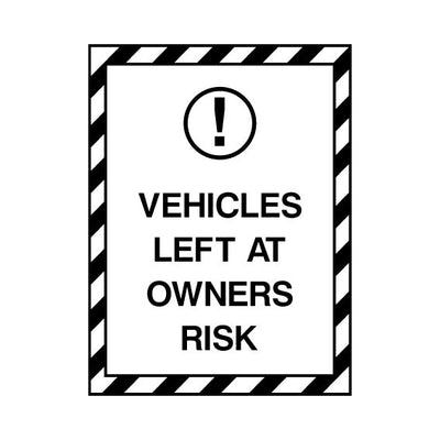 The Vehicles Left At Owners Risk sign falls under the Parking category. Ideal for use in car parks, driveways, and loading bays to manage vehicle access and prevent obstructions. This sign complies with UK health and safety standards, including BS ISO 7010, ensuring that it meets legal requireme