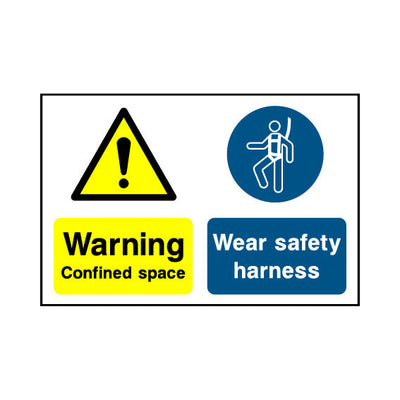 The Warning - Confined Space - Wear Safety Harness sign falls under the Multi Purpose category. This sign is commonly used in various settings, including workplaces, schools, and public spaces, to enhance safety and compliance. This sign complies with UK health and safety standards, including BS