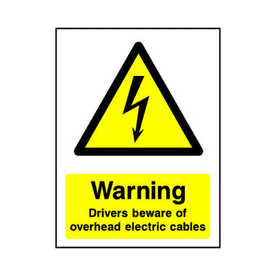 The Warning - Drivers Beware Of Overhead Electric Cables sign falls under the Electrical Hazard category. This sign is commonly used in various settings, including workplaces, schools, and public spaces, to enhance safety and compliance. This sign complies with UK health and safety standards, in