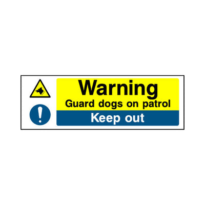 The Warning - Guard Dogs On Patrol - Keep Out sign falls under the Security category. This sign is commonly used in various settings, including workplaces, schools, and public spaces, to enhance safety and compliance. This sign complies with UK health and safety standards, including BS ISO 7010,