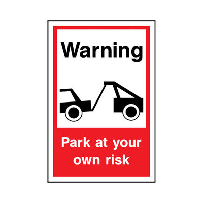 The Warning - Park At Your Own Risk sign falls under the Parking category. This sign is commonly used in various settings, including workplaces, schools, and public spaces, to enhance safety and compliance. This sign complies with UK health and safety standards, including BS ISO 7010, ensuring t