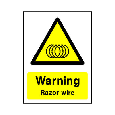 The Warning - Razor Wire sign falls under the Countryside & Agriculture category. This sign is commonly used in various settings, including workplaces, schools, and public spaces, to enhance safety and compliance. This sign complies with UK health and safety standards, including BS ISO 7010,