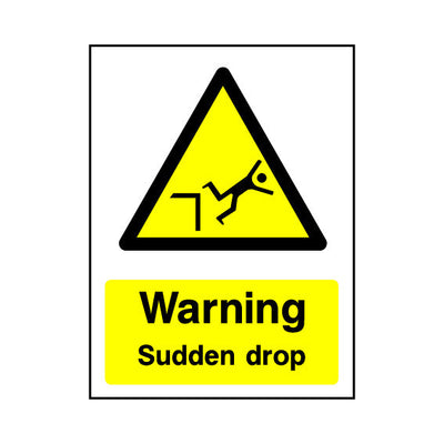 The Warning - Sudden Drop sign falls under the General Warning category. This sign is commonly used in various settings, including workplaces, schools, and public spaces, to enhance safety and compliance. This sign complies with UK health and safety standards, including BS ISO 7010, ensuring tha
