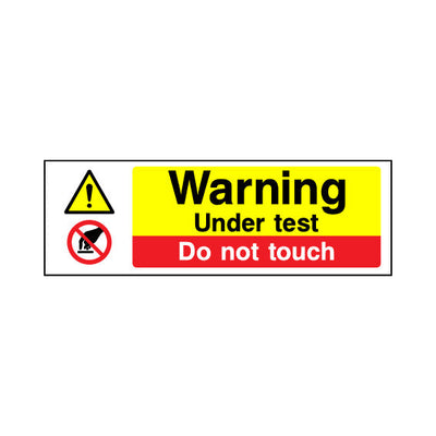 The Warning - Under Test - Do Not Touch sign falls under the Multi Purpose category. This sign is commonly used in various settings, including workplaces, schools, and public spaces, to enhance safety and compliance. This sign complies with UK health and safety standards, including BS ISO 7010,