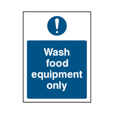 The Wash Food Equipment Only sign falls under the Food Processing & Hygeine category. This sign is commonly used in various settings, including workplaces, schools, and public spaces, to enhance safety and compliance. This sign complies with UK health and safety standards, including BS ISO 7