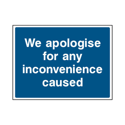 The We Apologise For Any Inconvenience Caused sign falls under the Construction category. This sign is commonly used in various settings, including workplaces, schools, and public spaces, to enhance safety and compliance. This sign complies with UK health and safety standards, including BS ISO 7