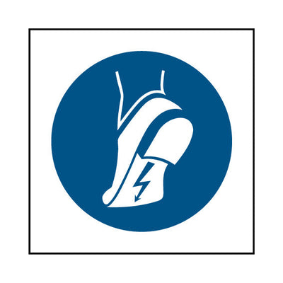 The Wear Anti-static Footwear - Anti-static Footwear Icon sign falls under the Personal Protective Equipment category. This sign is commonly used in various settings, including workplaces, schools, and public spaces, to enhance safety and compliance. This sign complies with UK health and safety
