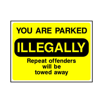 The You Are Parked Illegally sign falls under the Parking category. This sign is commonly used in various settings, including workplaces, schools, and public spaces, to enhance safety and compliance. This sign complies with UK health and safety standards, including BS ISO 7010, ensuring that it