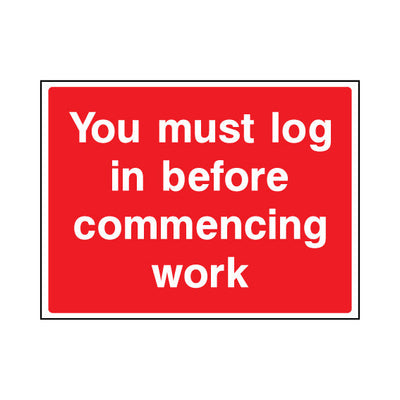 The You Must Log In Before Commencing Work sign falls under the Construction category. This sign is commonly used in various settings, including workplaces, schools, and public spaces, to enhance safety and compliance. This sign complies with UK health and safety standards, including BS ISO 7010